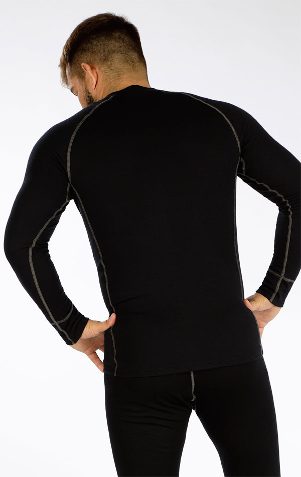Herren Funktionsunterhemd. Rundhalsausschnitt. Lange Ärmel. Hinterteil länger. Flache Nähte. 50% Modal + 50% Polypropylen901 schwarzM, L, XL, XXL, XXXL